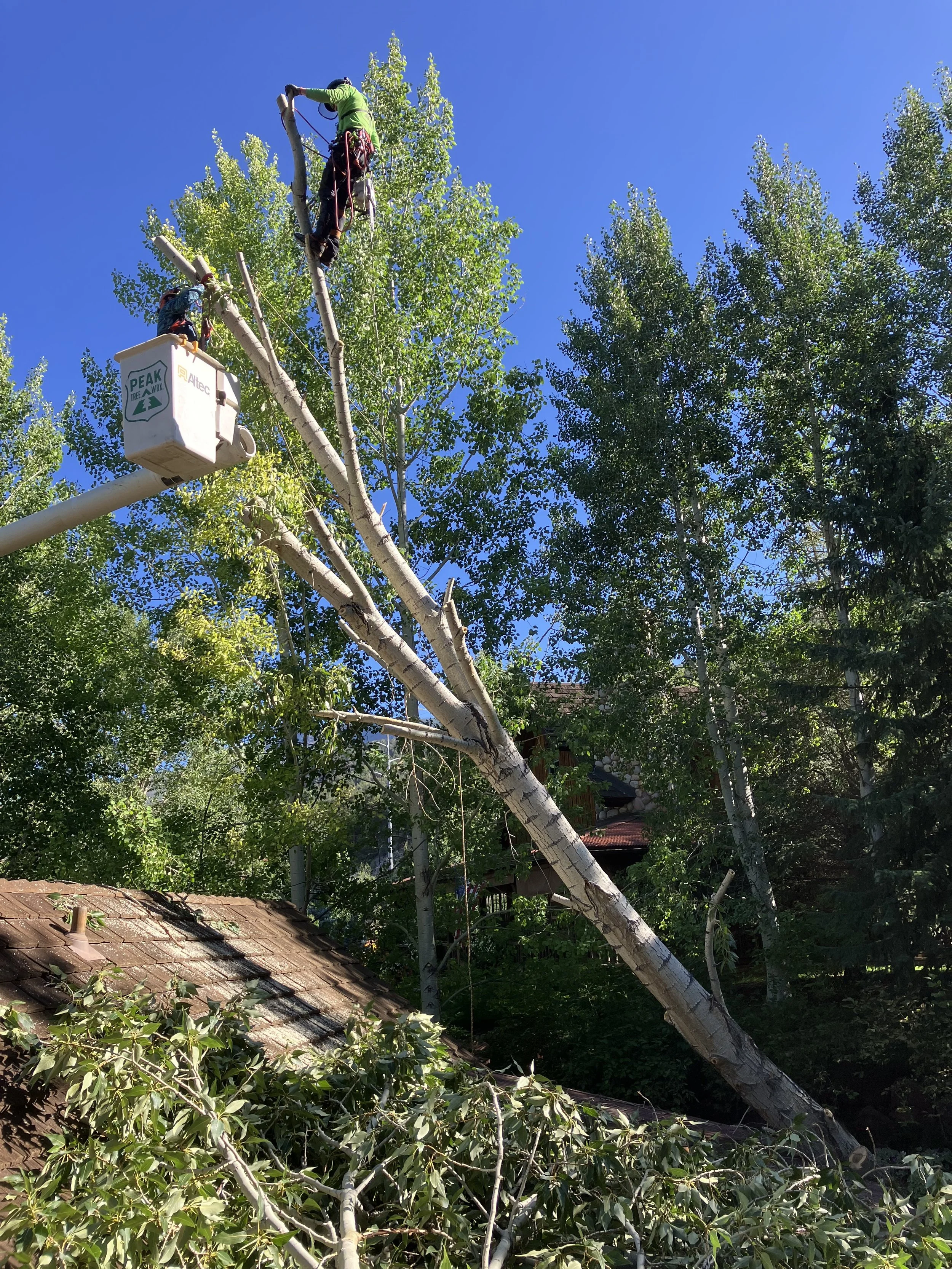 Removing deadwood from nearby trees.